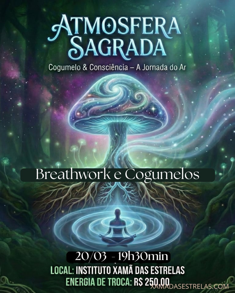 🌬️ Atmosfera Sagrada: Cogumelo & Consciência 📅 20/03 - 19h 30min📍 Instituto Xamã das Estrelas ✨ R$ 250,00